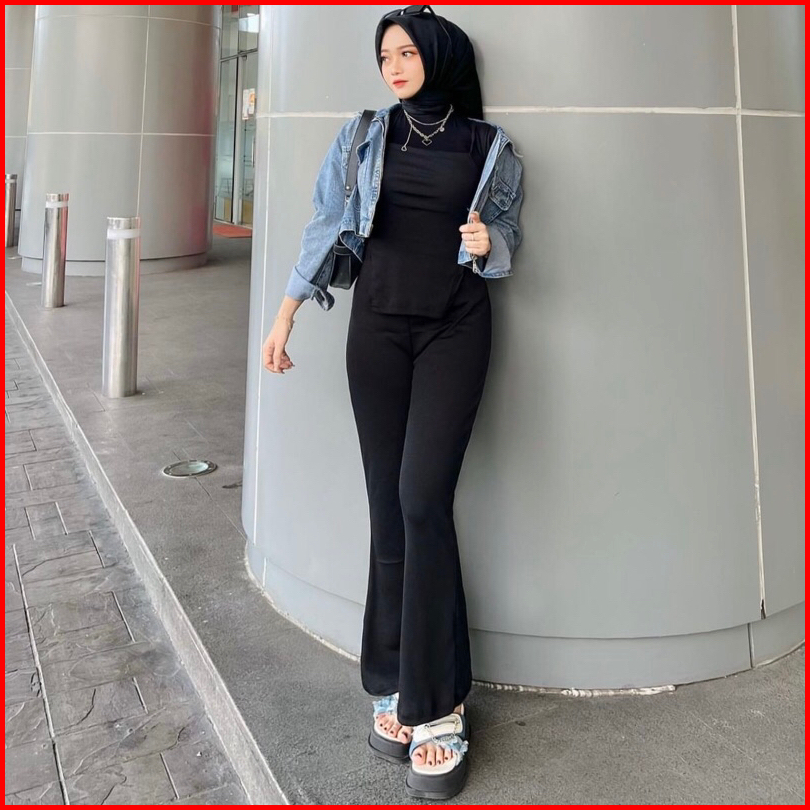Flare Pants - Highwaist Flare Pants - Celana Kulot Cutbray Wanita - Kulot Cutbray Scuba Premium