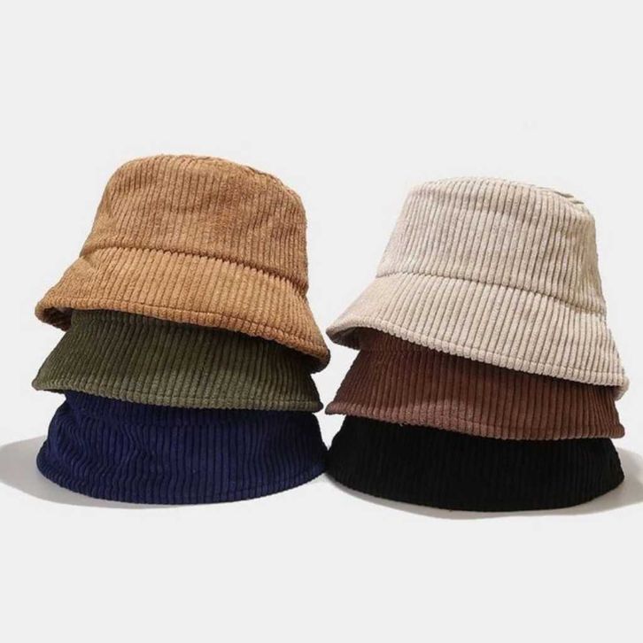 Topi Bucket cowok Cewek Dewasa Corduroy Polos Kekinian Topi Bucket Corduroy Bolak Balik Tebal Bucket Hat