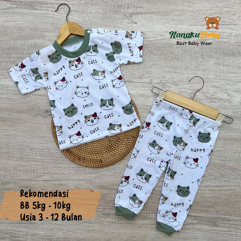 Nanaku Baby - Setelan Baju Bayi Laki Laki & Perempuan Model Tangan Pendek Celana Panjang Usia 3-12 Bulan Motif Smile