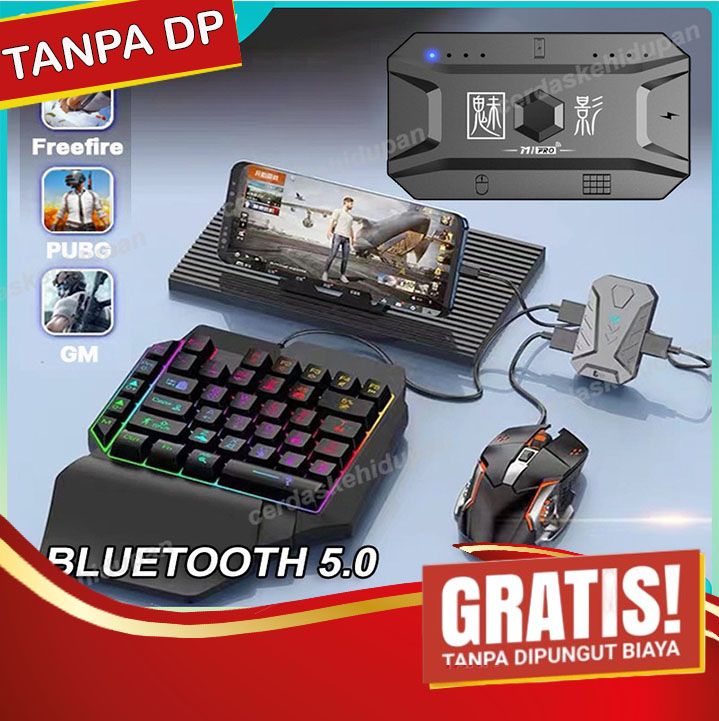 Paket keyboard gaming dan Mouse/Single Hand Gaming RGB Keyboard dan mouse PUBG keyboard gamin USB 5.0 Converter Wired Ke