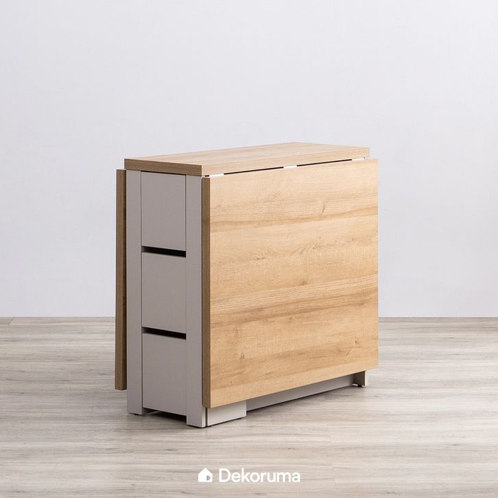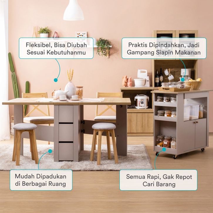 Meja Makan Minimalis Kayu Lipat Multifungsi dengan Laci Serbaguna Hemat Ruang Modern Anti Gores