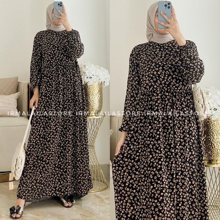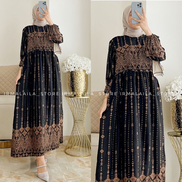 Daster Motif Kekinian Hawa Midi Dress Wanita Rayon Premium Busui Friendly
