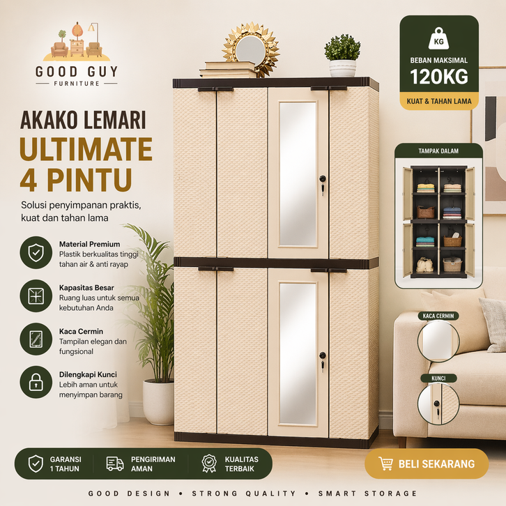 [Mall] Lemari Plastik 4 Pintu Ultimate | Lemari Pakaian Besar Anti Air & Rayap