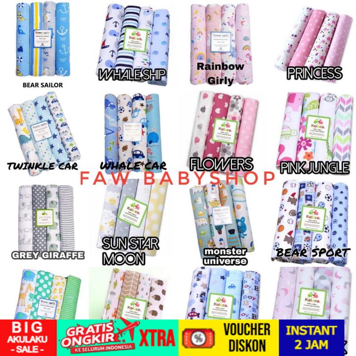 4PCS Kain Bedong Bayi Flanel Jumbo Carter Love isi 4 PCS / Just To You / Kolaco/ Carters/ Flower Carts