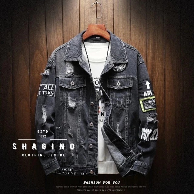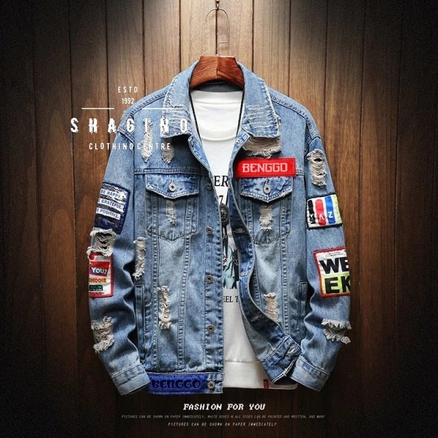 Jaket Jeans Pria Dan Wanita - Jaket Jeans Pria Korean Style - Jaket Jeans Pria Sobek - Jaket Jeans