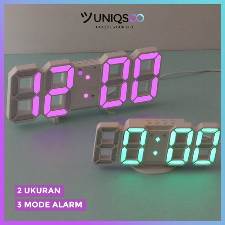Jam Dinding Aesthetic UNIQSOO Jam Meja LED 3D Jam Dinding Digital LED 3D Bentuk Angka M0DEern Minimalis FS019
