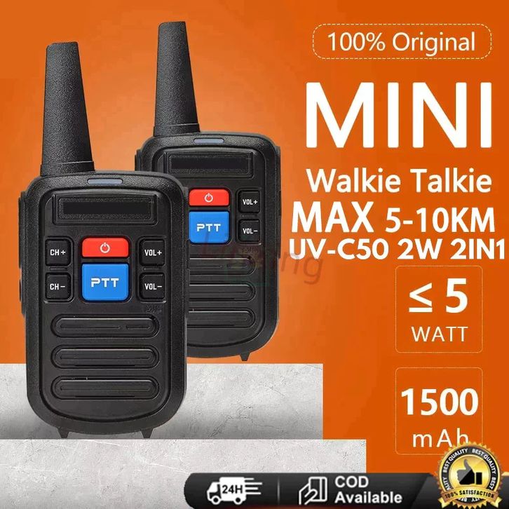 HT Mini Jarak Jauh 【】 HT C50 Walkie Talkie Dual Band 5W UHF handy talkie 2 UNIT With Headphone