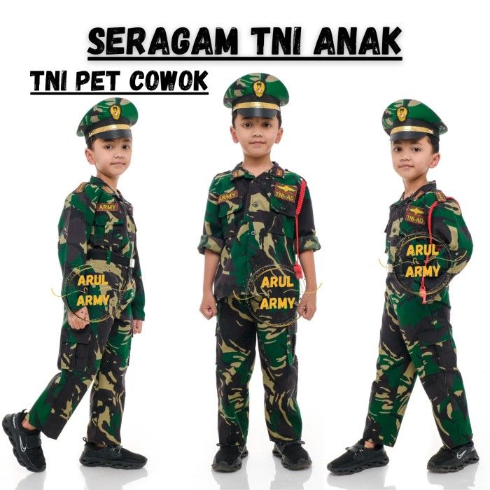 SERAGAM TNI ANAK BAJU TNI AD AU AL ANAK KOSTUM TENTARA ABRI ANAK - TNI PET COWOK, S