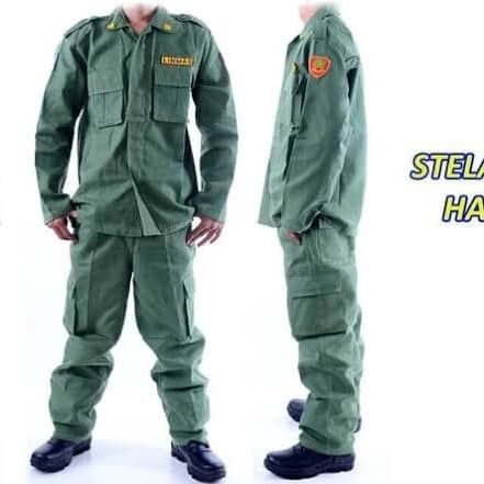 Baju seragam setelan linmas hansip keamanan topi baju celana atribut - M
