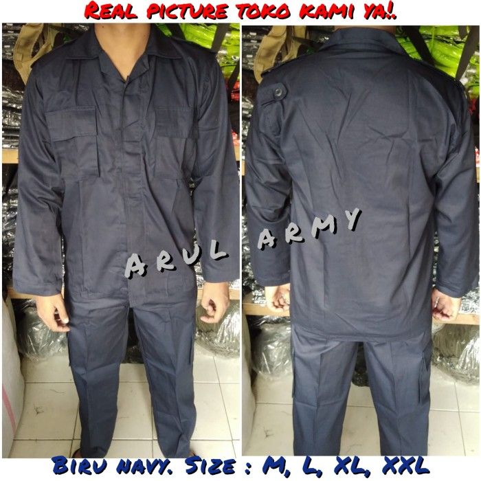 BAJU SERAGAM SETELAN PDL SECURITY SATPAM BROMOB KEAMANAN HITAM / BIRU - Hitam, M