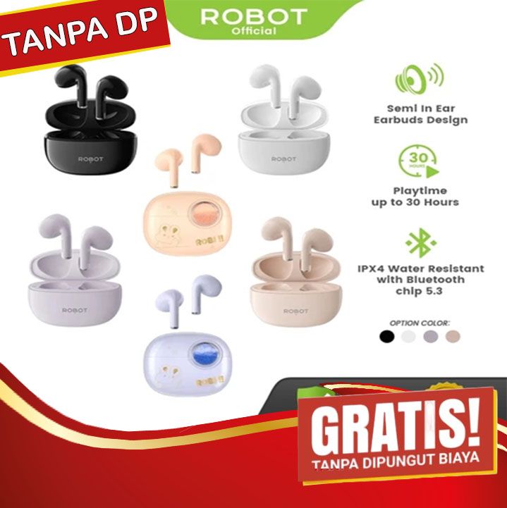 BARU ROBOT TWS Flybuds T10S Semi In Ear Wireless Earbuds Bluetooth 5.3 IPX4 Waterproof Original - Garansi 1 Tahun