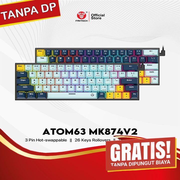 BARU Fantech ATOM MIZU SERIES Keyboard Mechanical Gaming ATOM 63 81 96 Hotswappable 3 Pin