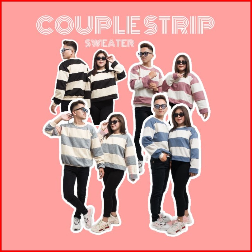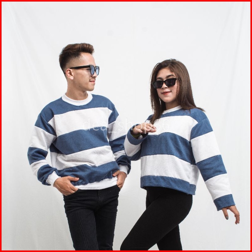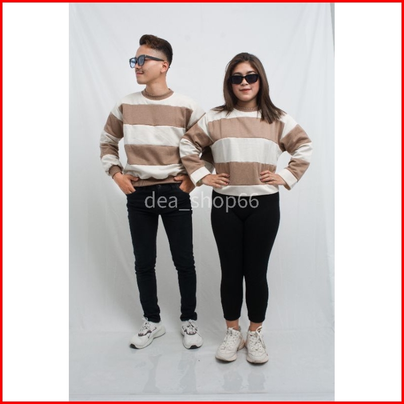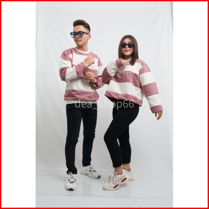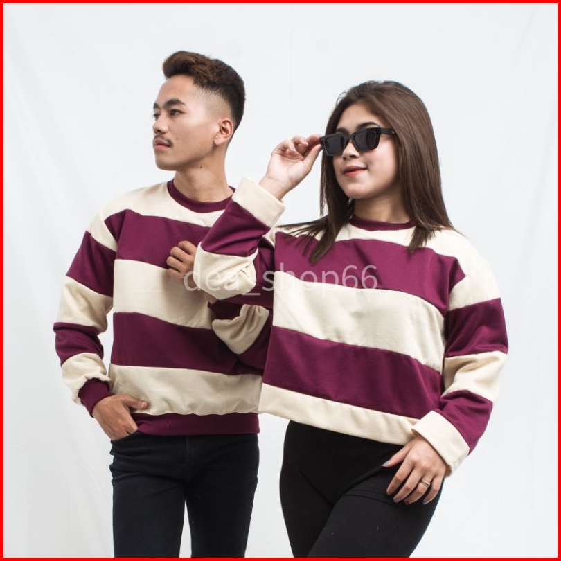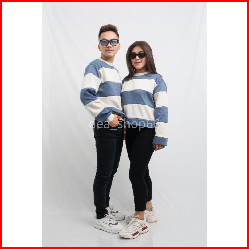 Sweater Couple Stripe Pria Wanita Sweater Stripe Viral-sweater Cuple Polos Size L-xxl.