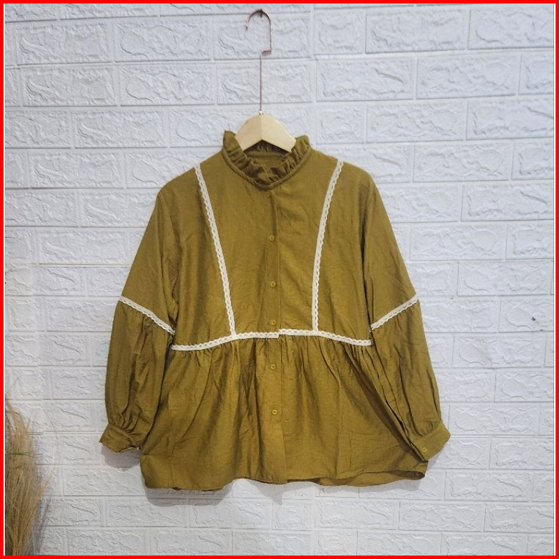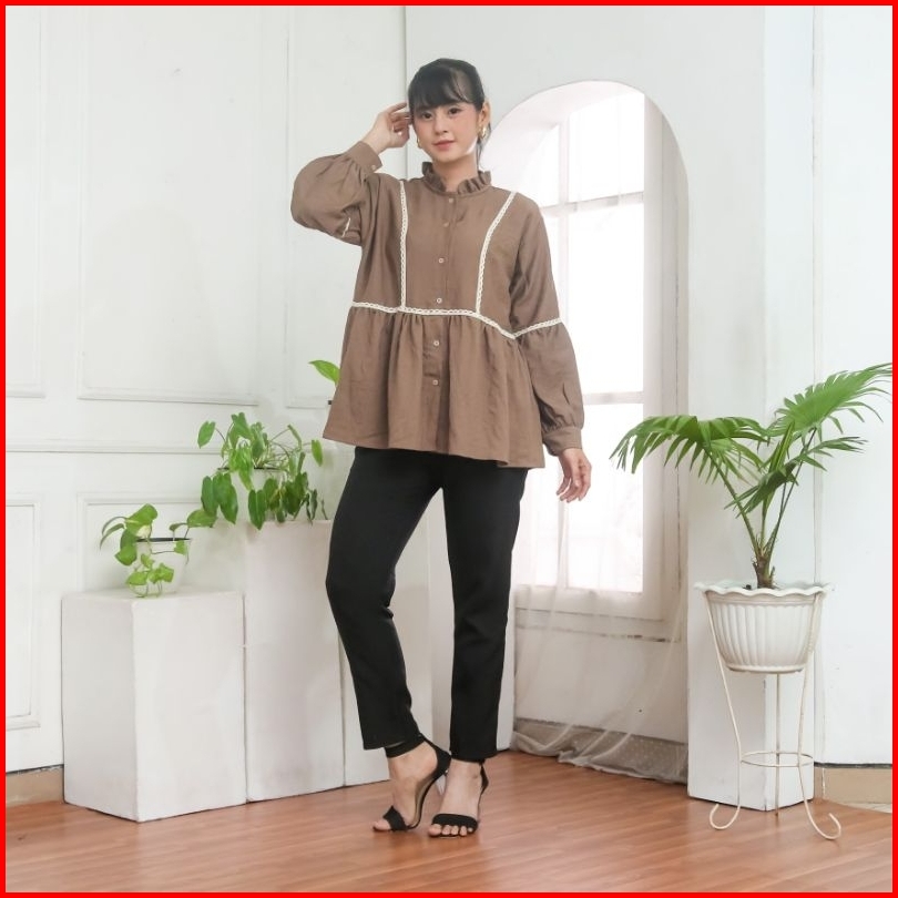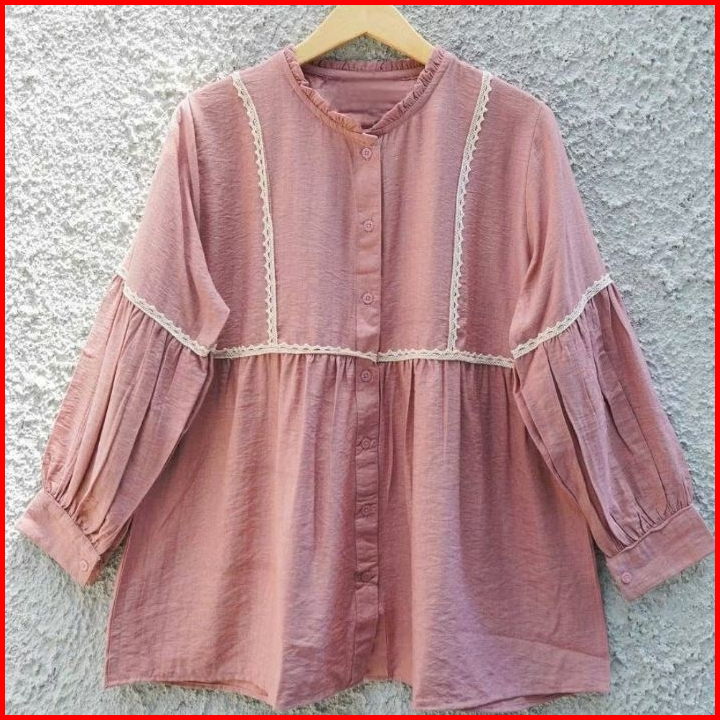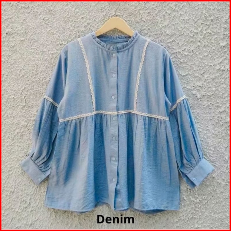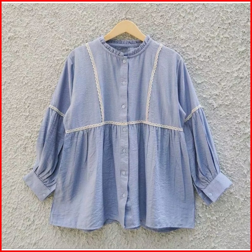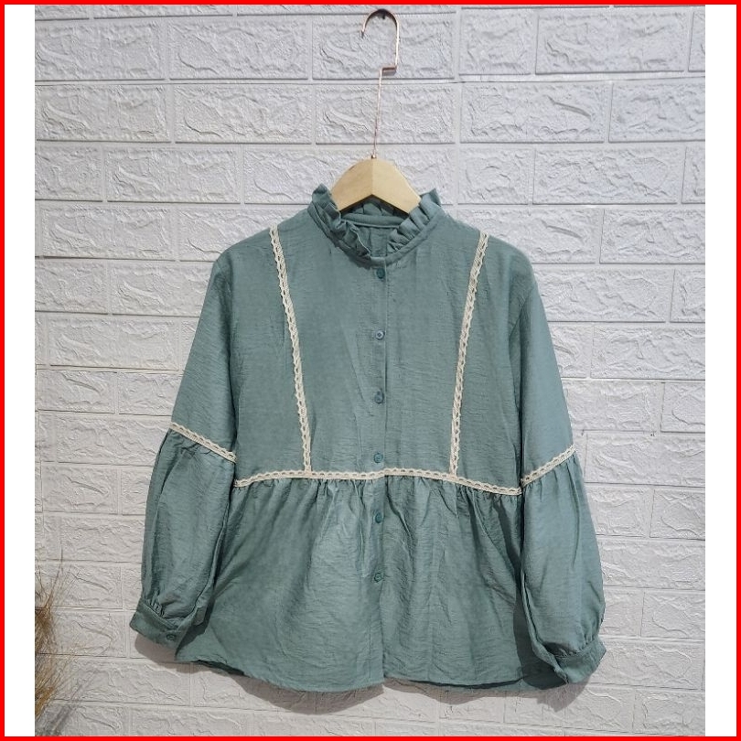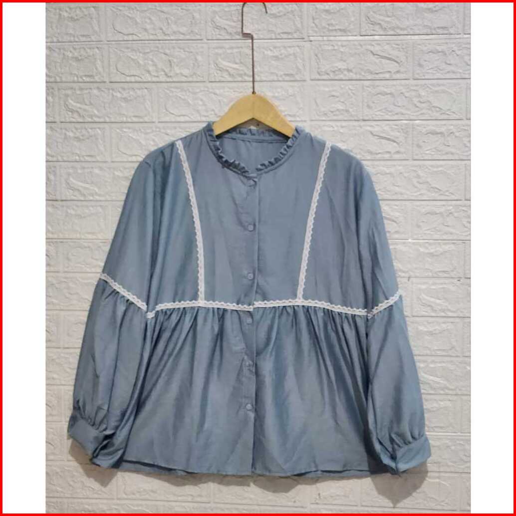 Serina Blouse Atasan Wanita Motif Renda Kemeja Korean Style Kekinian