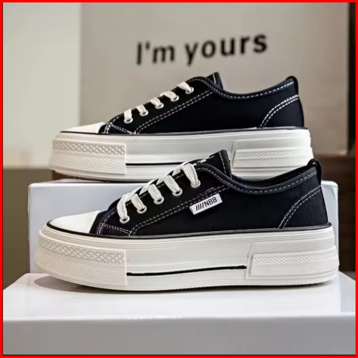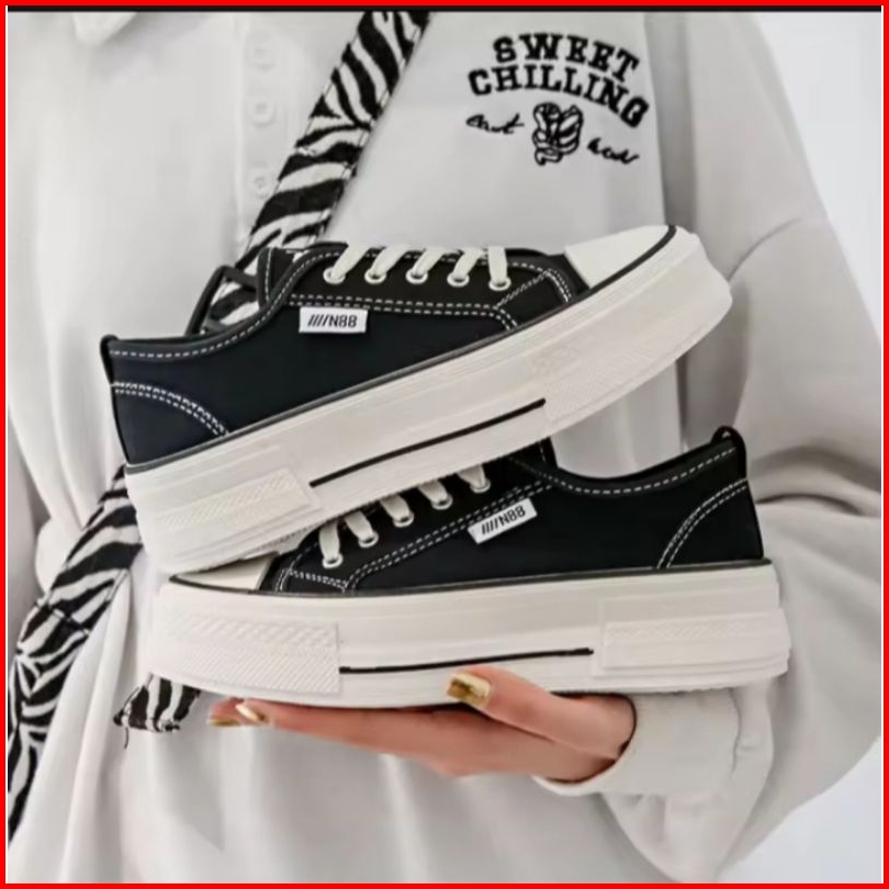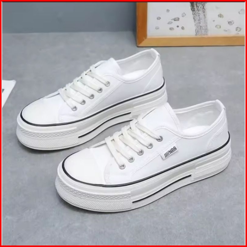 Sepatu Wanita Canvas Bertali Kasual Fashion Korea Terbaru Free Box