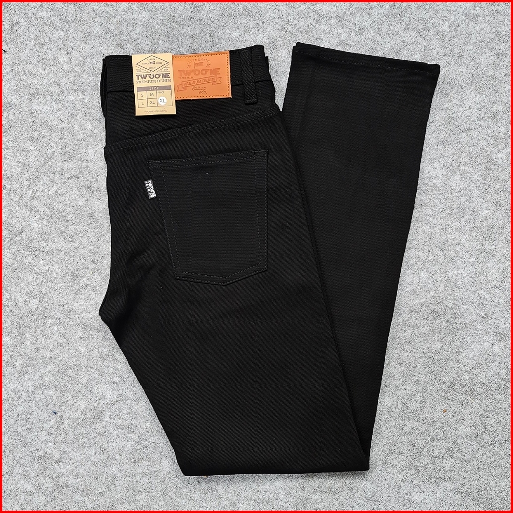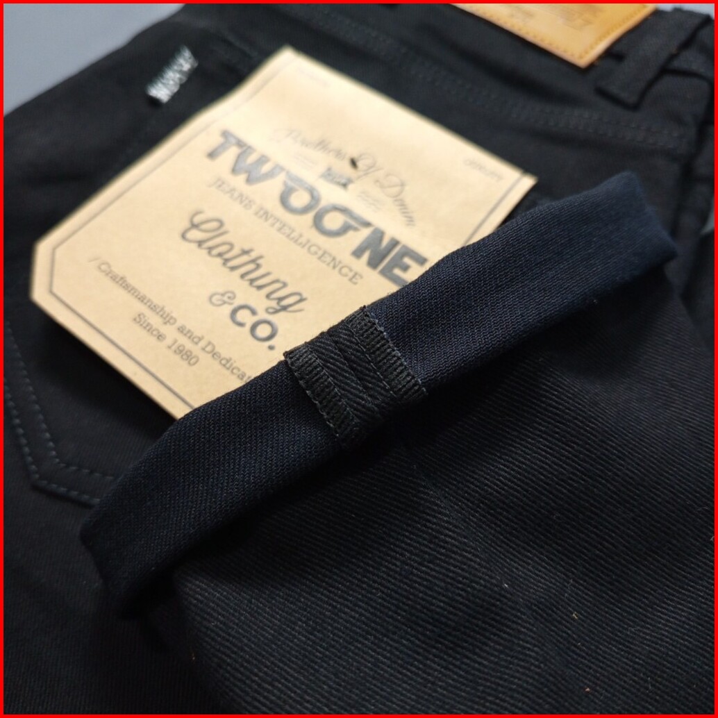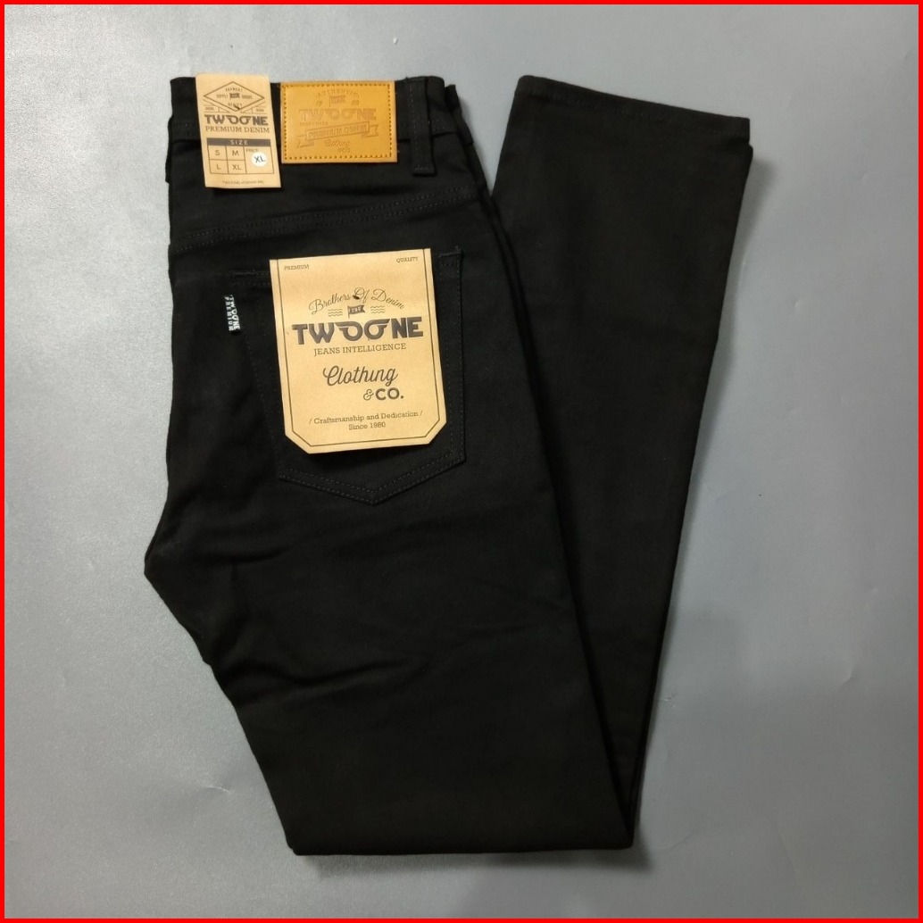 Two One Celana Jeans Panjang Pria Slim Fit Denim Stretch Hitam Pekat