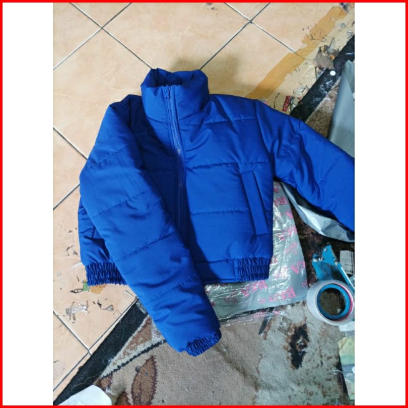 Jaket Crop Wanita Winter Women Black Read Bloe Waith Tebal Musim Dingin