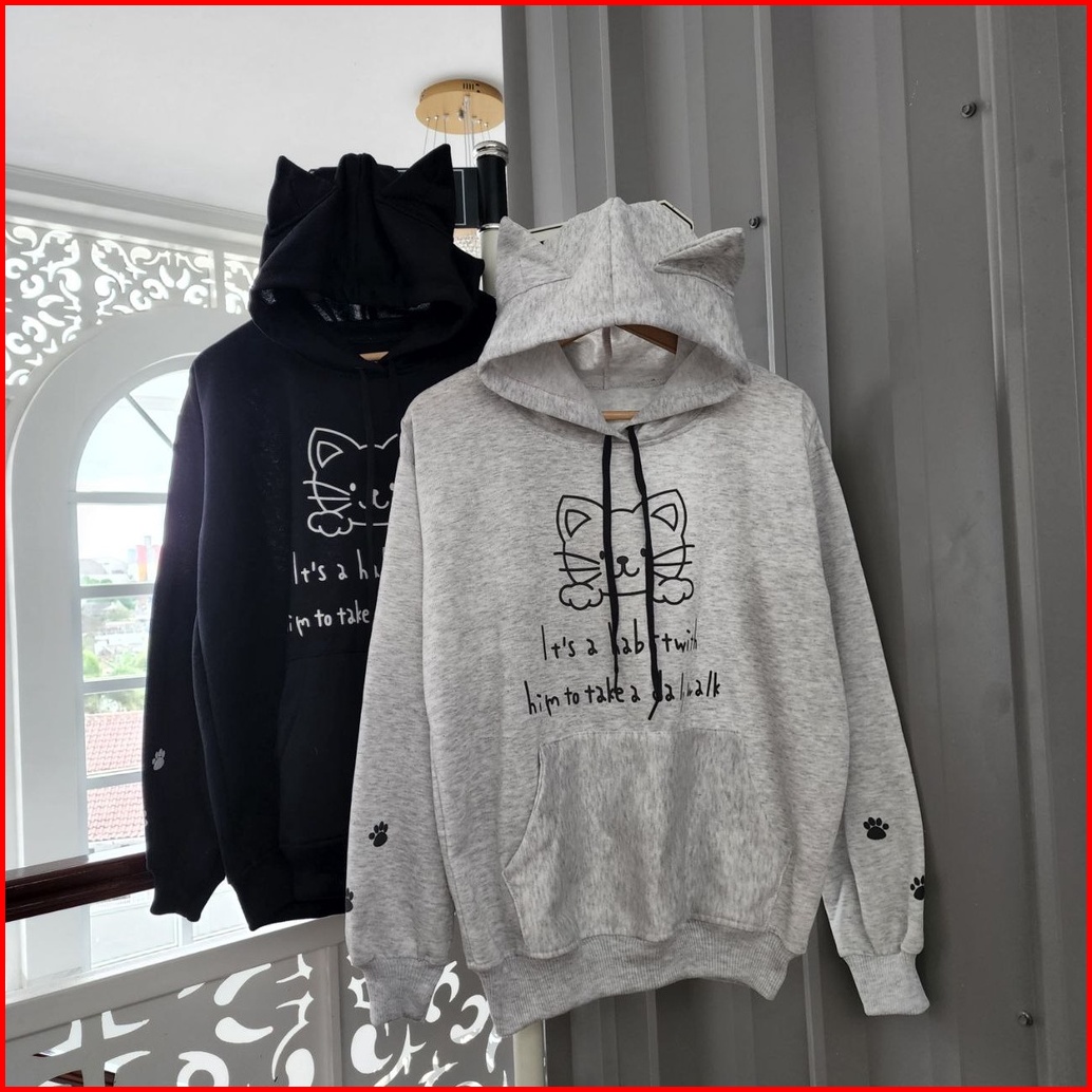 Isi 2 Pcs Jaket Sweater Couple Pasangan Cat Ear Jaket Pasangan Pacar Warna Lucu Imut Jaket Couple Sahabat Switer Couple