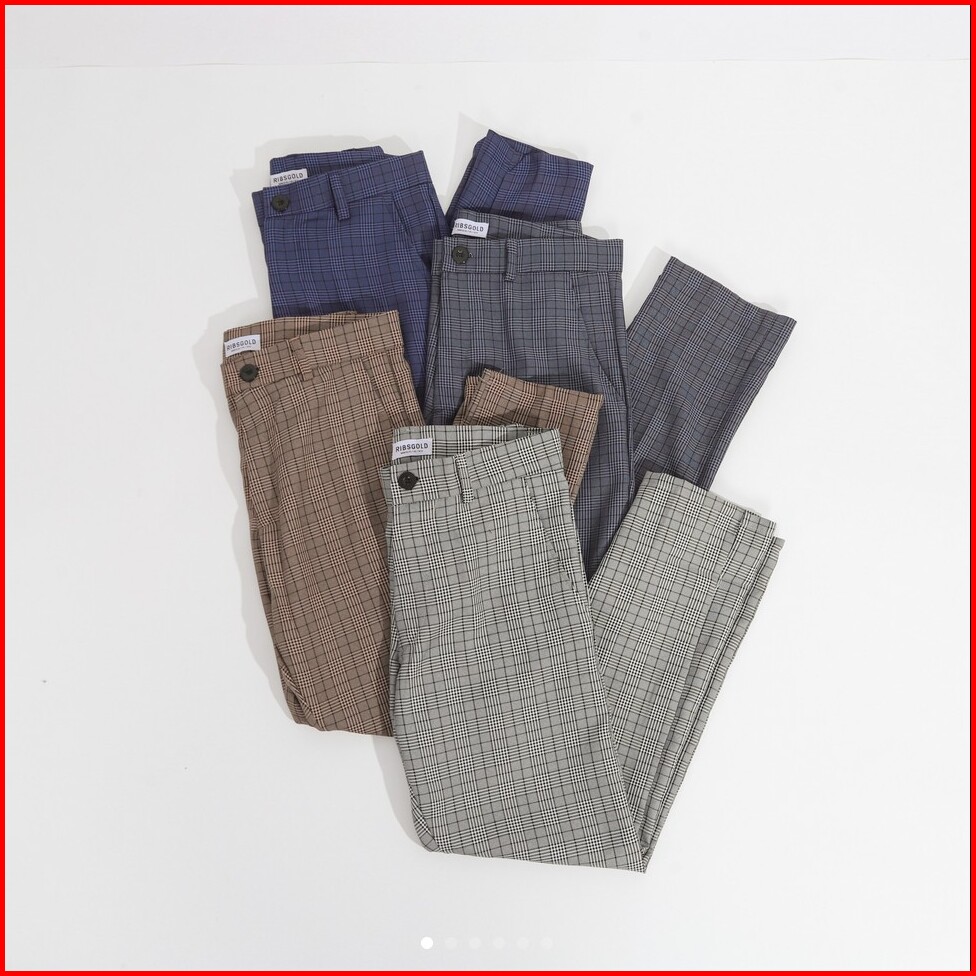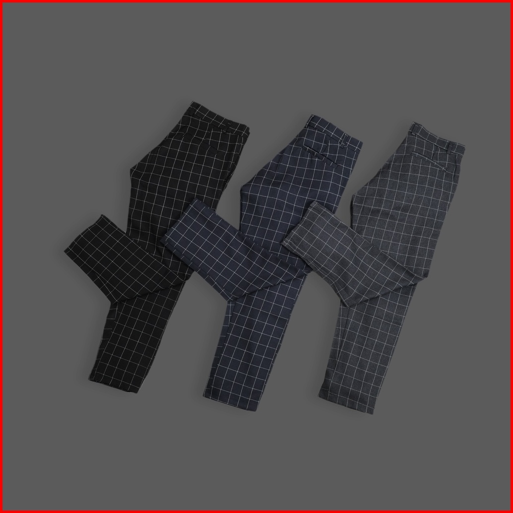 Av - Ribsgold Celana Kerja Tartan Ankle Pants Formal Dan Casual Premium