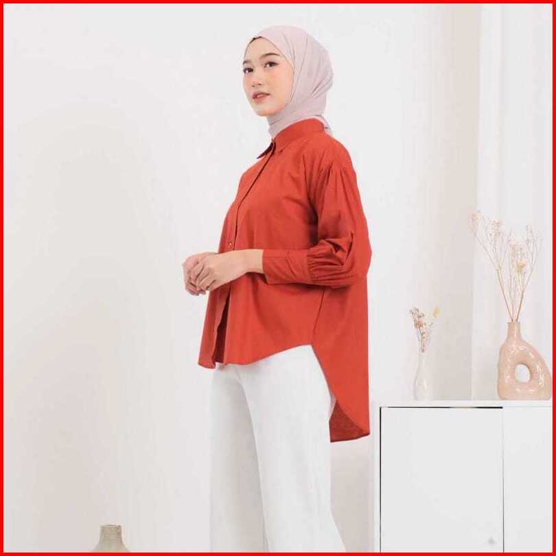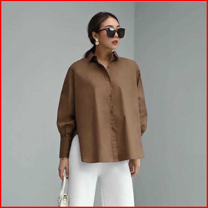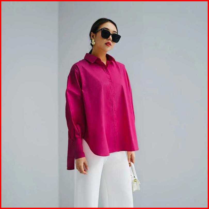 Gaudy Top Shirt Linen Kemeja Wanita Lengan Panjang Oversize