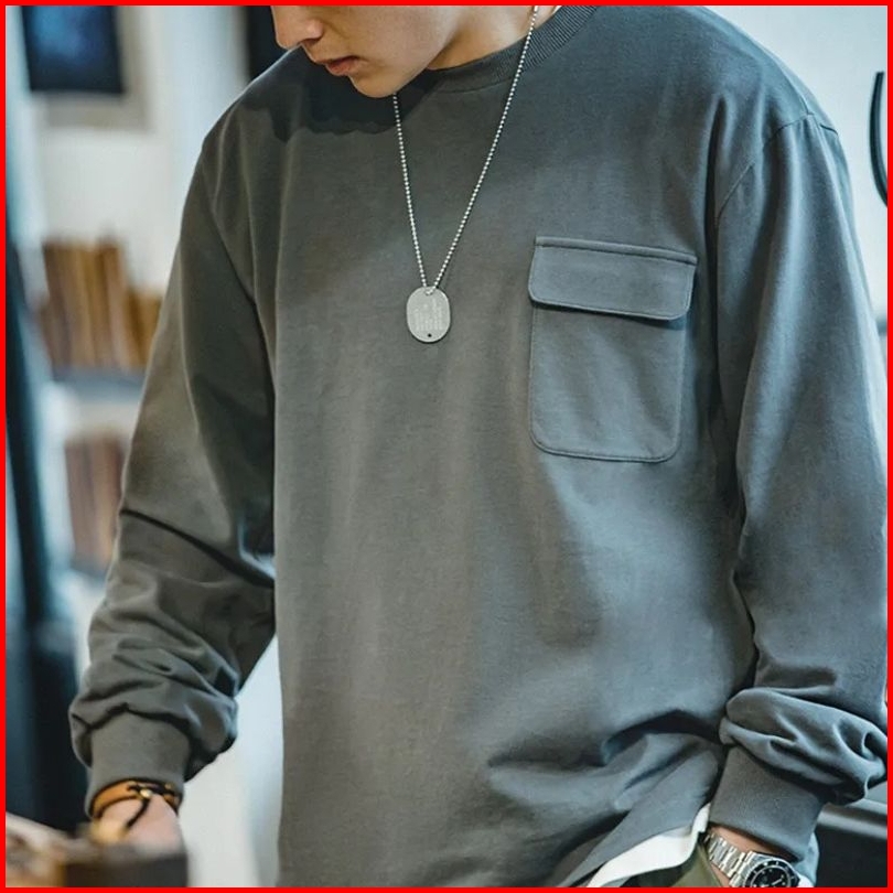 Kaos Oversize Panjang Pria Kaos Pocket Long Sleeve Kaos Polos