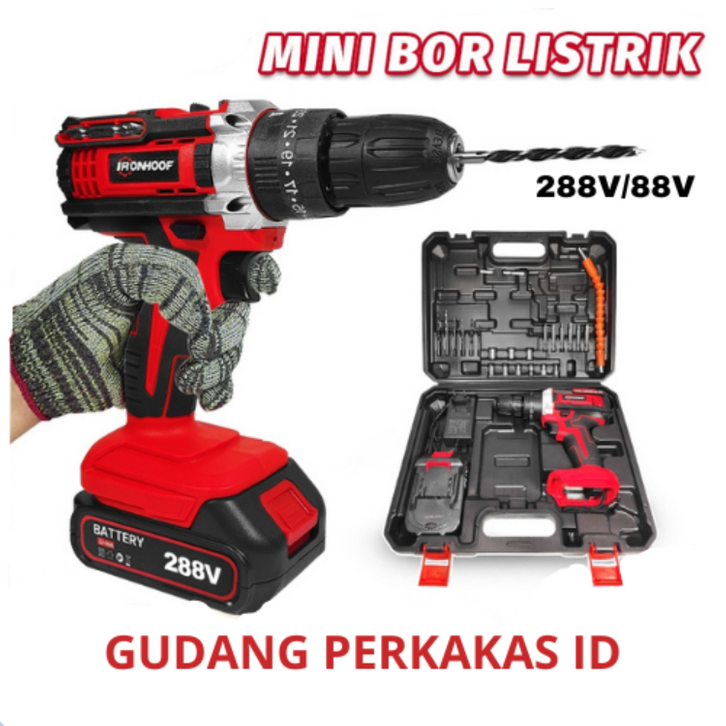 IRONHOOF | MESIN BOR LISTRIK CAS IMPACT BUKA BAUT 288v - 2 BATERAI- 30NM BA-TRAI CORDLESS ORIGINAL BESI BOLAK BALIK