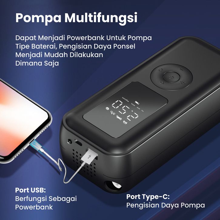 POMPA BAN MOBIL MOTOR ELEKTRIK PORTABLE DIGITAL OTOMATIS RECHARGERABL | SMART AIR PUMP PORTABLE | POMPA ANGIN MULTIFUNG