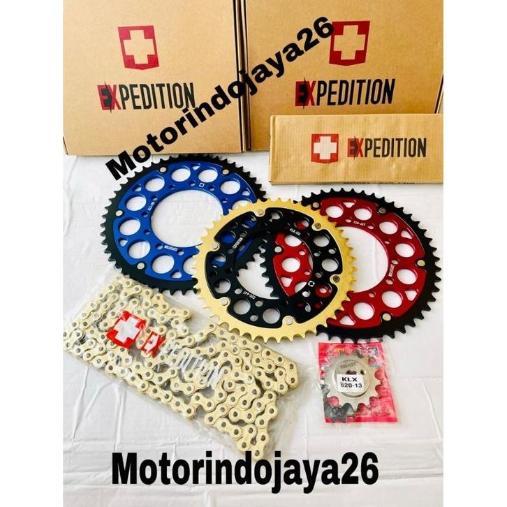 Gear motor trail 520 almunium klx 150 d tracker 150 expedition set rantai gold set lengkap rantai dan gear expedition