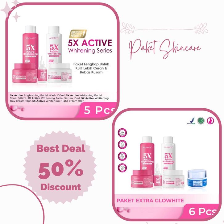 PAKET SKINCARE 5IN1 EXTRA ANIMATE GLOWHITE ANIMATE 5X ACTIVE WHITENING SERIES TERMURAHH