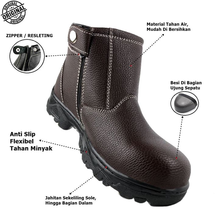 Sepatu Safety Boots Ujung Besi Pria Spatu Septi Kerja Slip On Septy Sefty Shoes Pabrik Lapangan