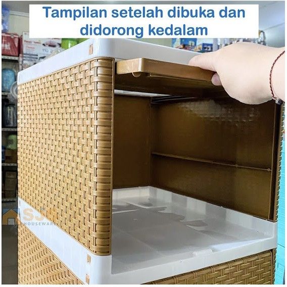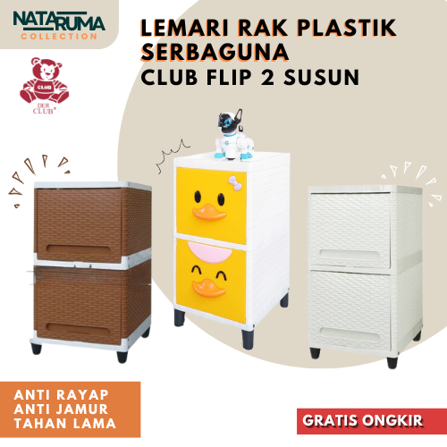 Lemari Rak Plastik Sebaguna Club Flip 2 Susun Motif Rotan Minimalis Portable Berkualitas Termurah