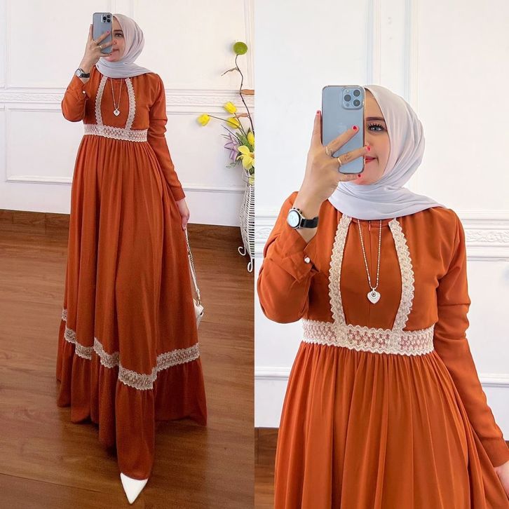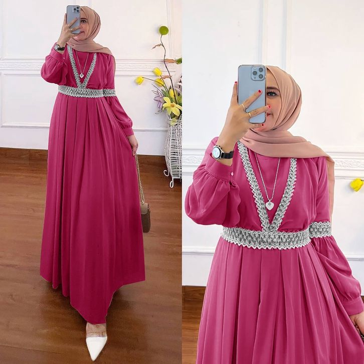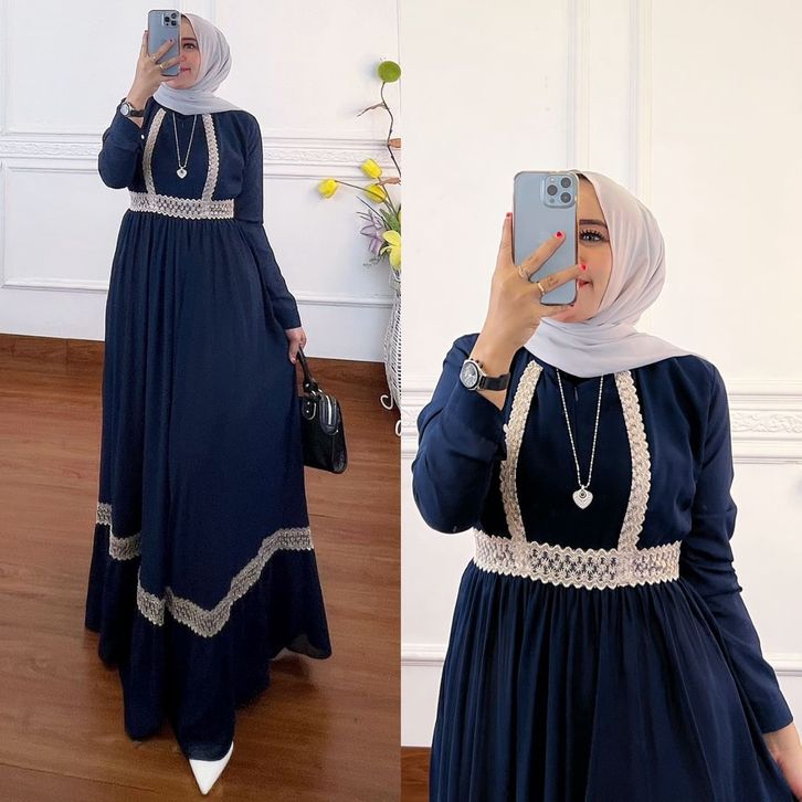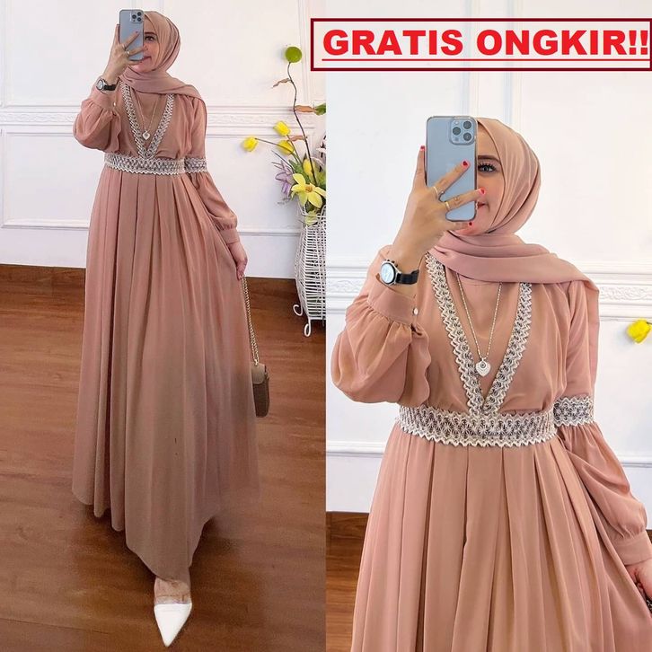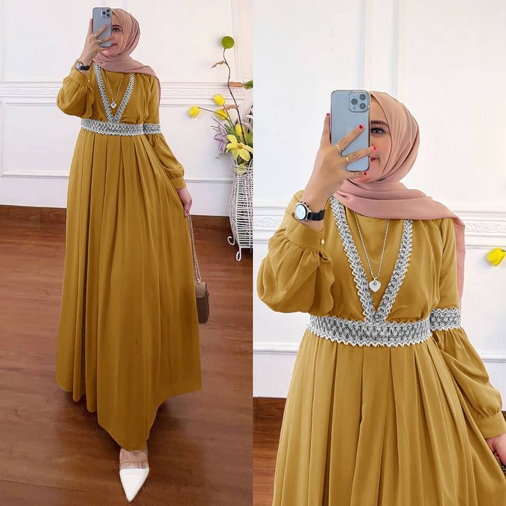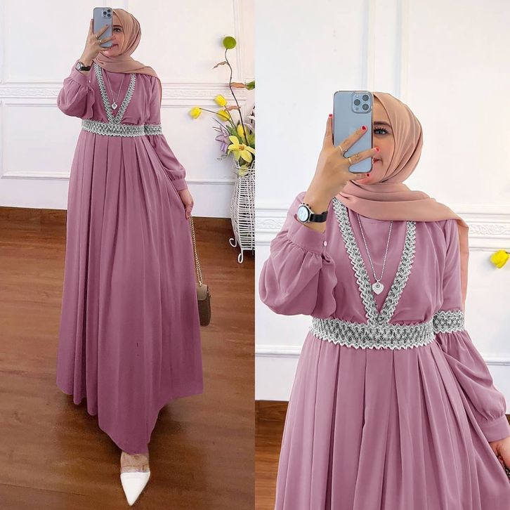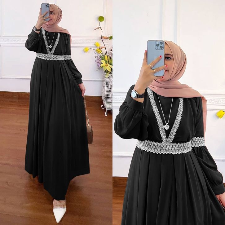Qaisha Dress Gamis Muslim Ceruty Premium Combi Renda Fashion Gaun Maxy Lebaran Pesta Kondangan Terbaru