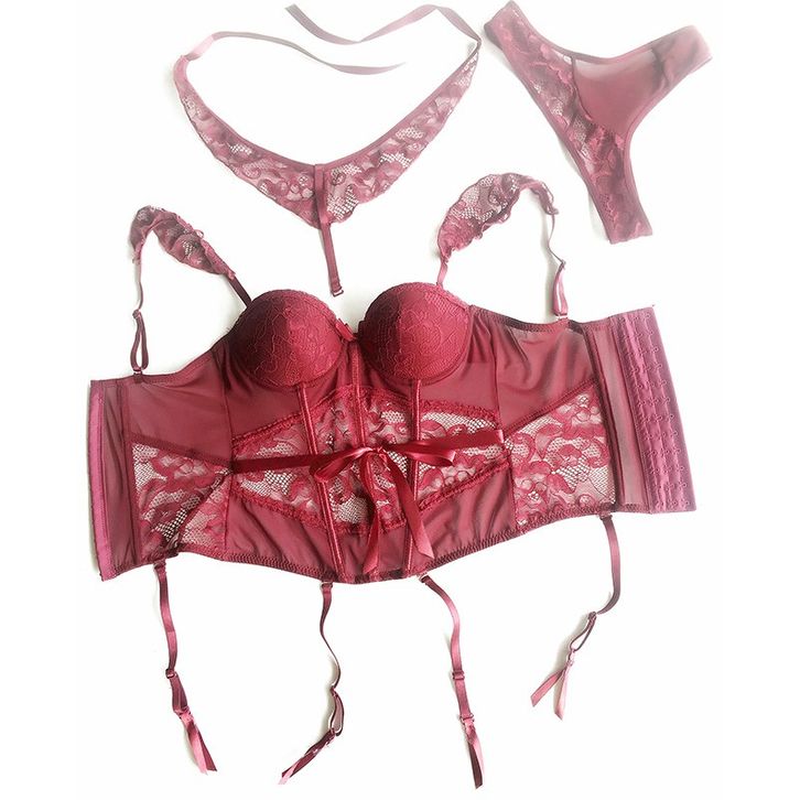 【Wetrose】Premium Lingerie Sexy Korset Bustier Bahan Lace untuk Wanita Body Slimming Hadiah Hari Valentine