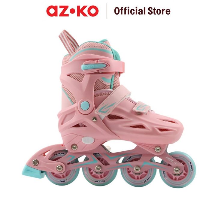 Sepatu Roda Inline Skate - Pink/Hijau Inline Skates Roller Shoes Perlengkapan Olahraga AZKO Berwyn Ukuran S