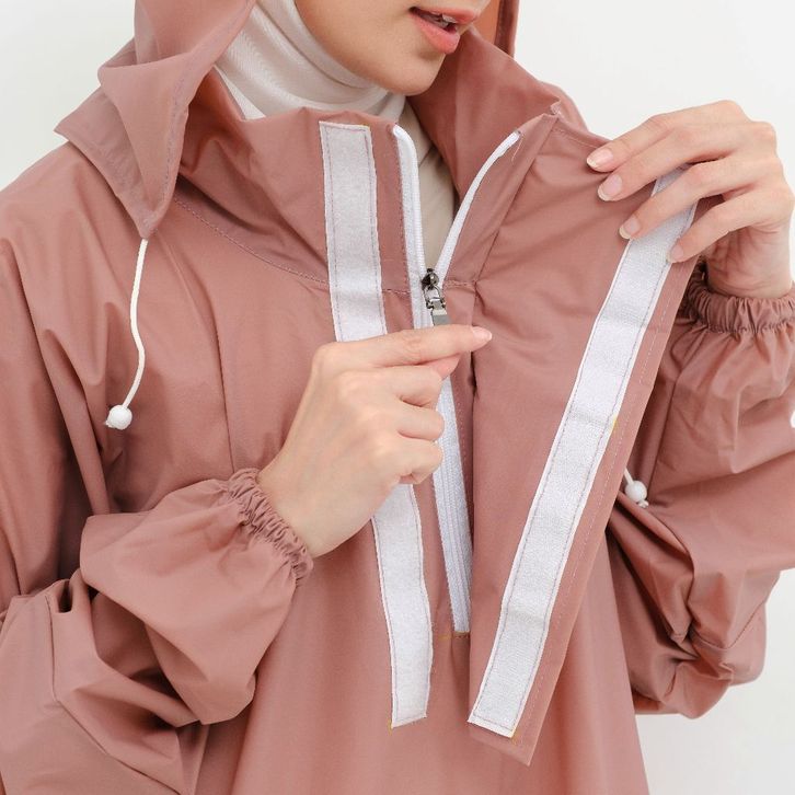 [Mall] Jas Hujan Wanita Gamis Syar'i Jumbo Pastel Dusty Pink Pvc Tebal
