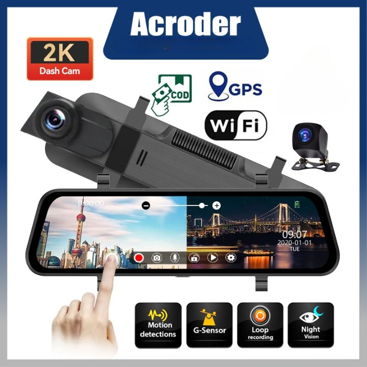 Kamera Dashcam Acroder Mobil WIFI 2K 10 Inch Layar Sentuh IPS Night Vision Dual Lens Perekaman Loop 24 jam
