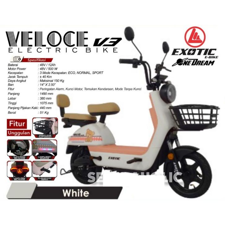 SEPEDA LISTRIK EXOTIC VELOCE V3 / VELOCE V2 / VELOCE V4 / FASTRON SLX 6.0 / VALERO RX 5.0 RX 6.0 500 WATT BY PACIFIC