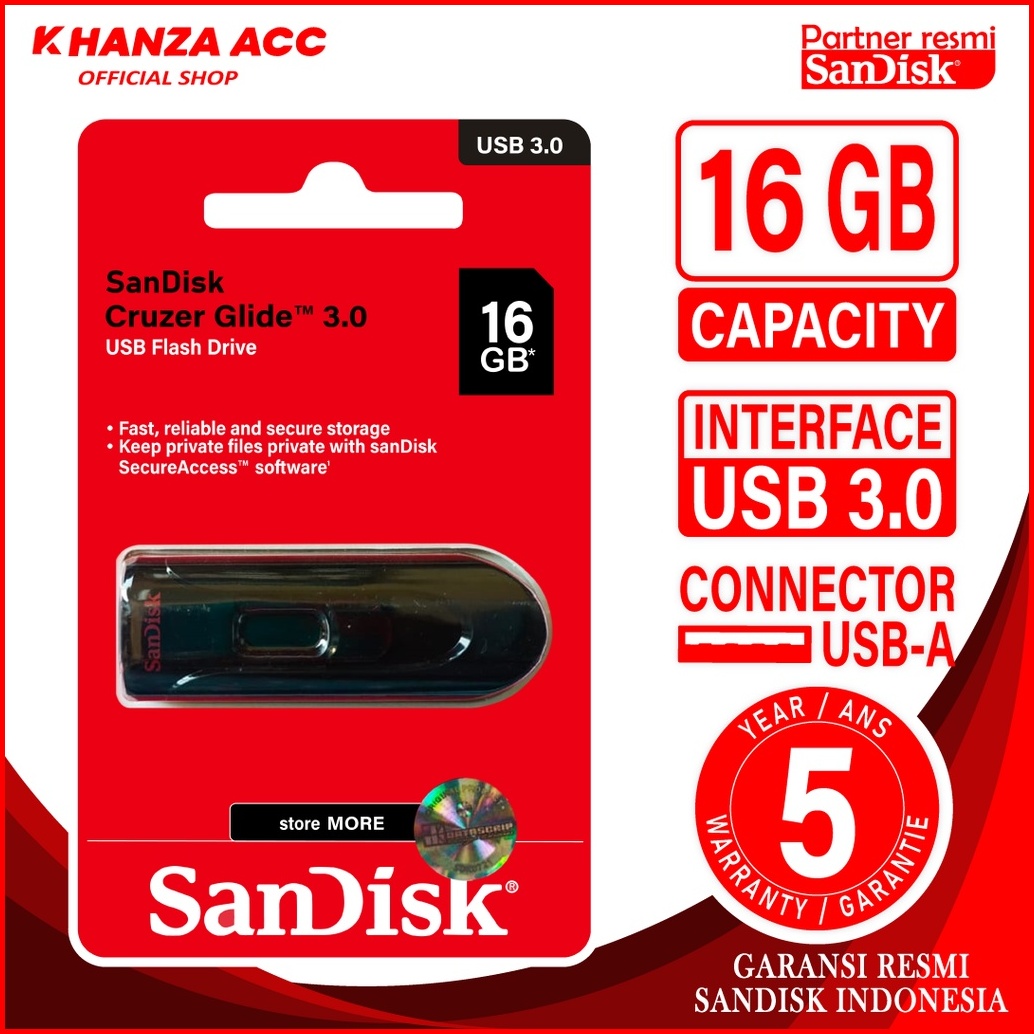 Khanzaacc Promo Flashdisk Sandisk Cruzer Glide 16gb 32gb 64gb 128gb Usb 3.0 Original Bergaransi Resmi