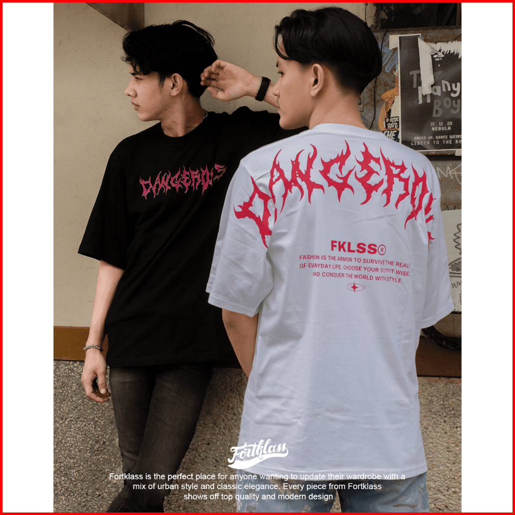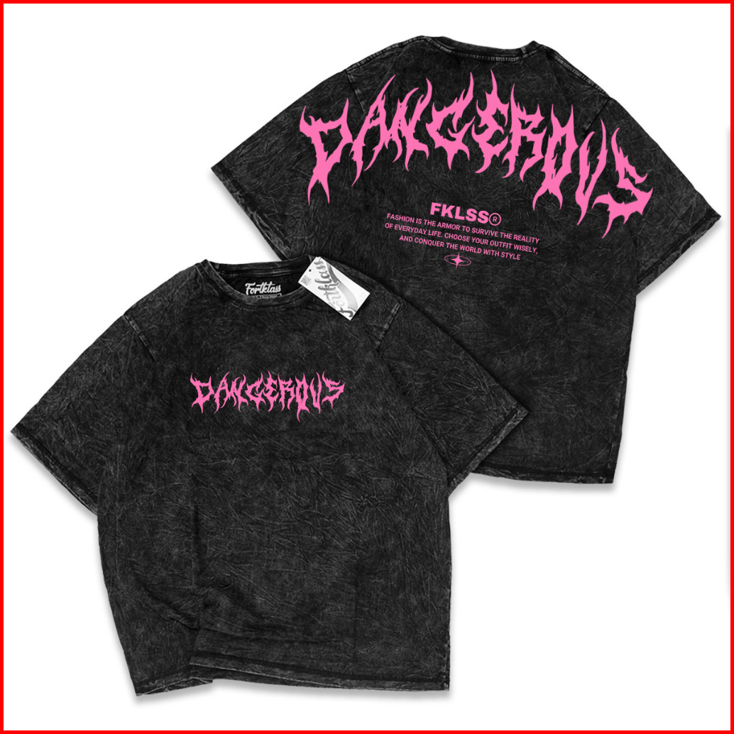 Fortklass Kaos Oversize Wash Dangerous Kaos Oversize Pria Lengan Pendek