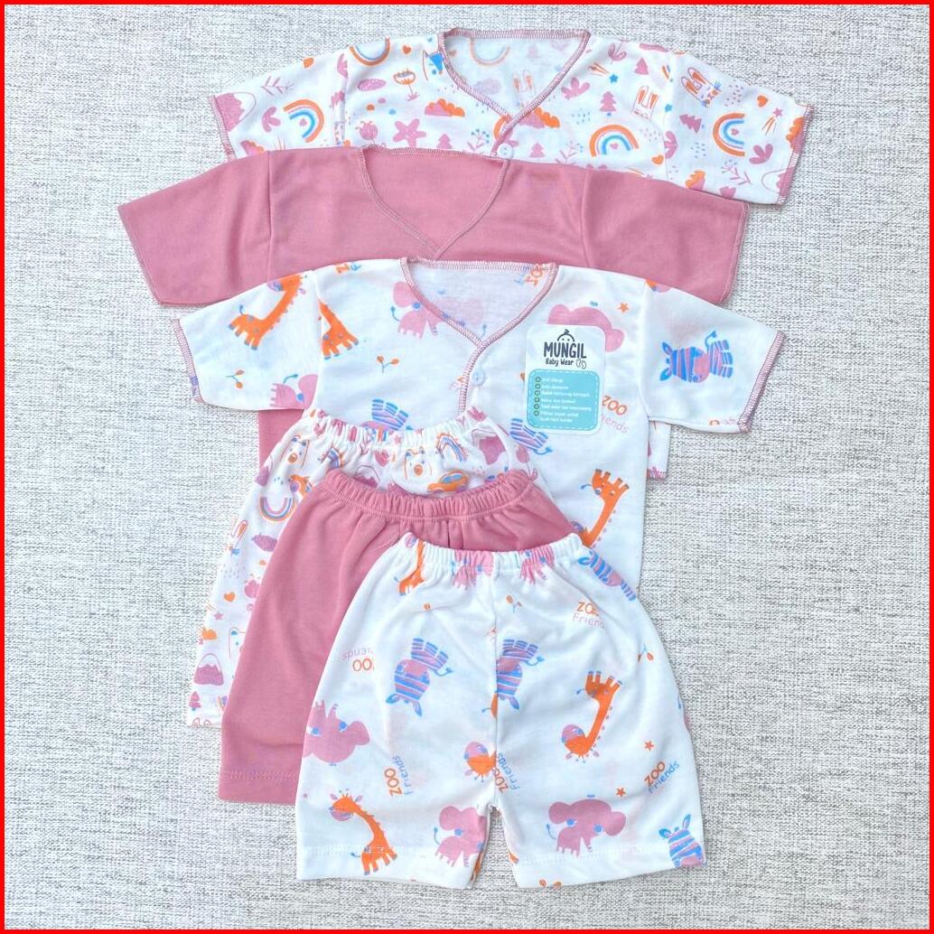 3 Pcs Baju Lengan Pendek 3 Pcs Celana Pendek Baju Bayi Baru Lahir Series Pink Mungil Baby Wear
