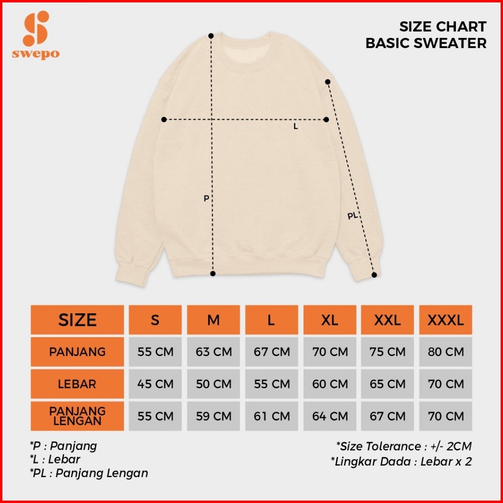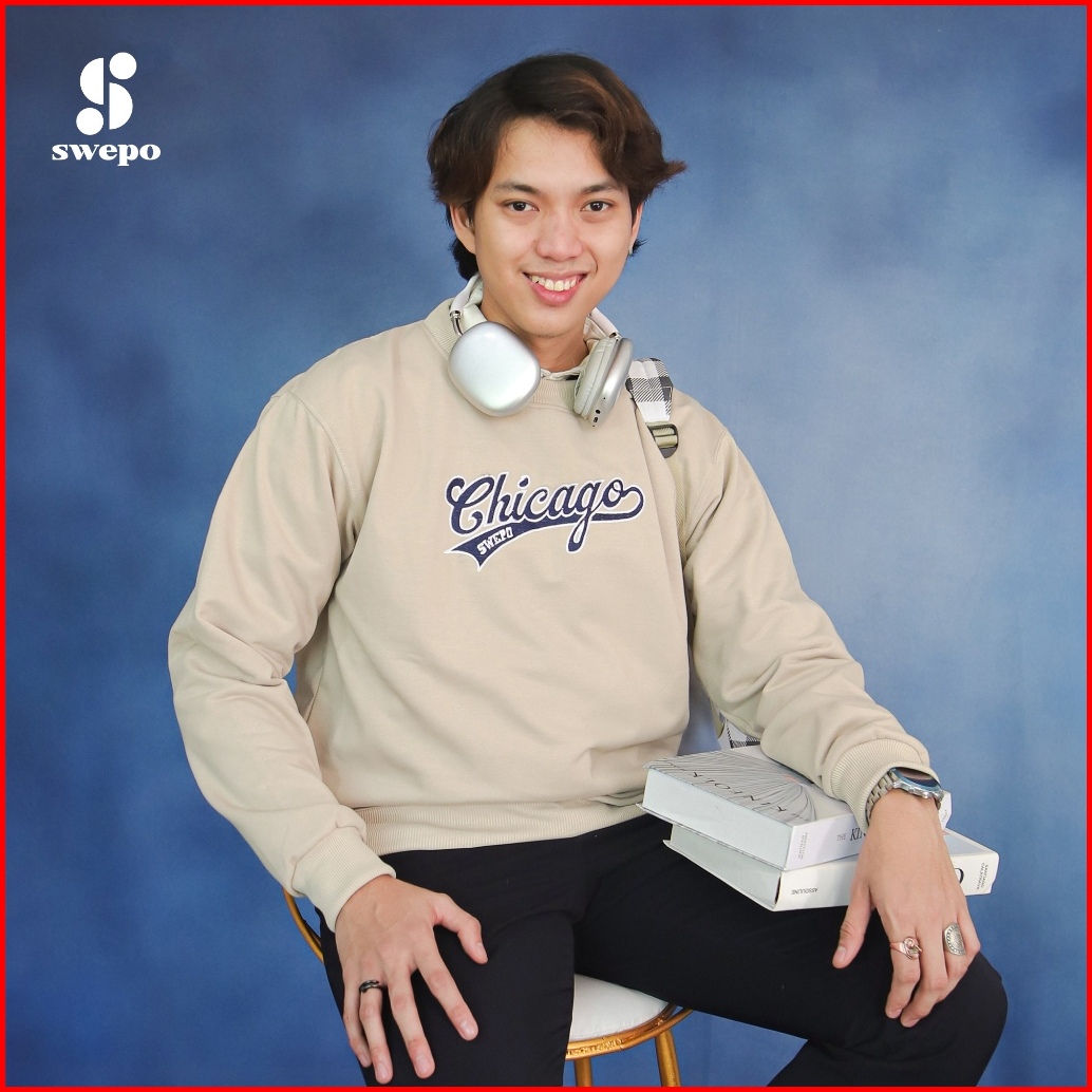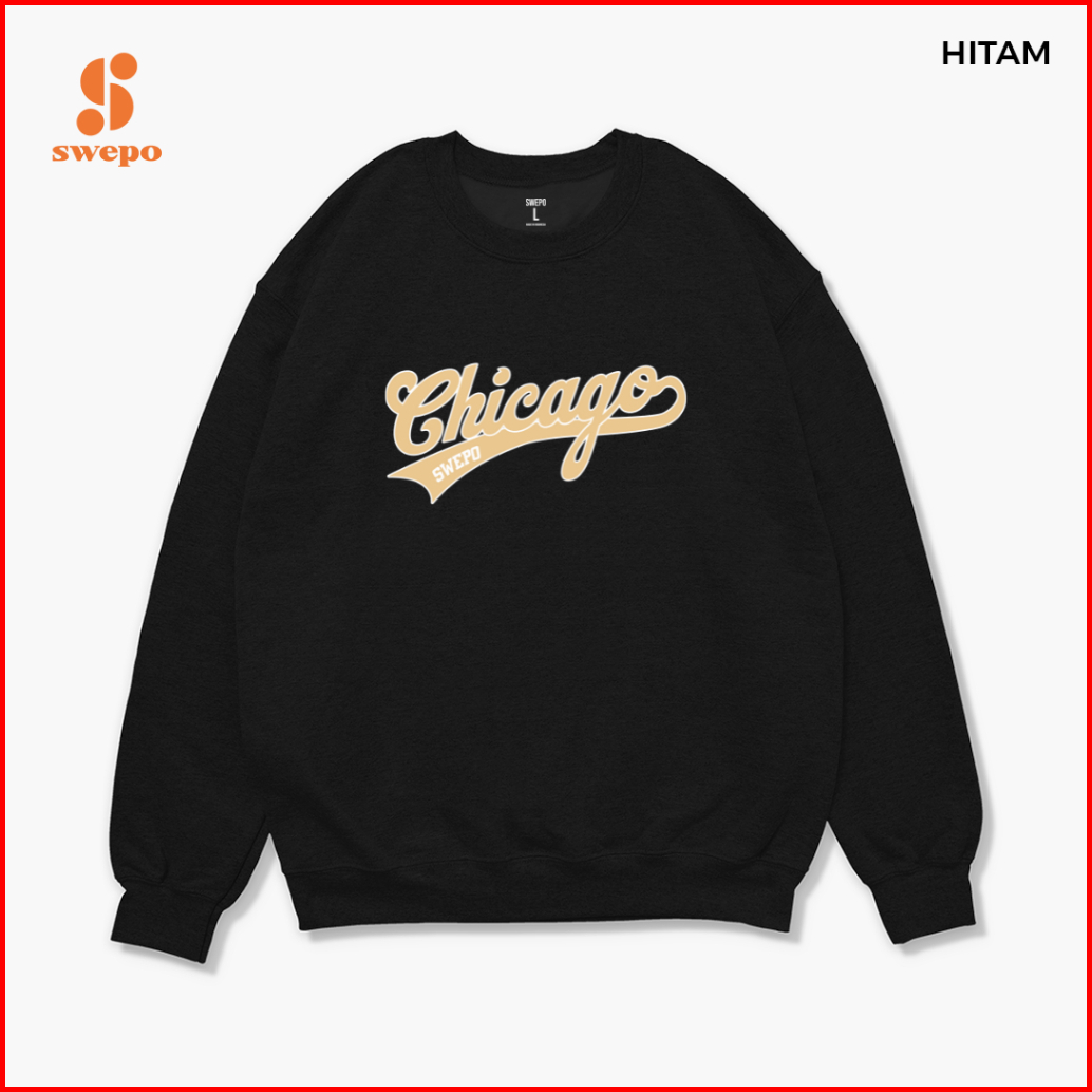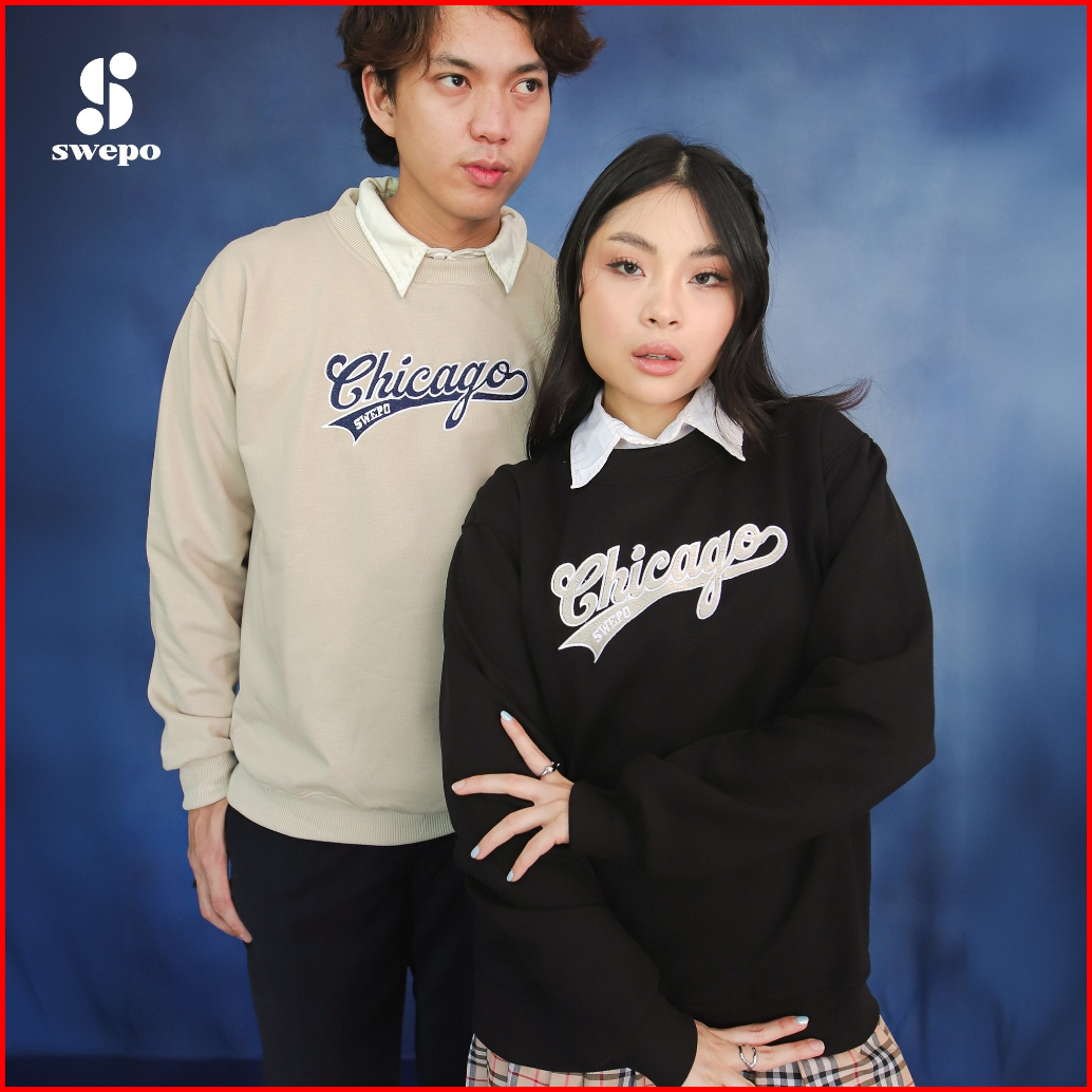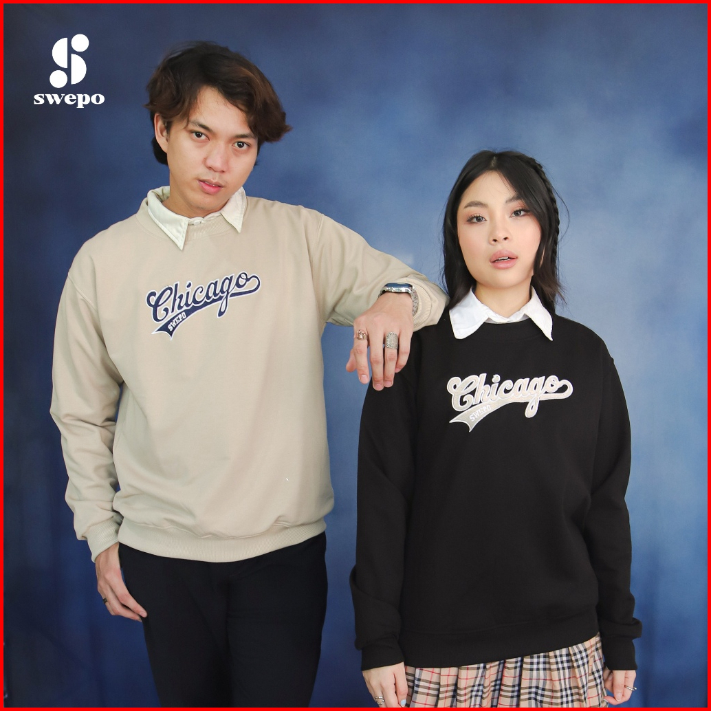 Swepo Basic Sweater Chicago Bordir Size M-xxl Pria Wanita