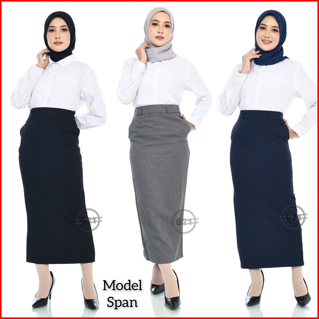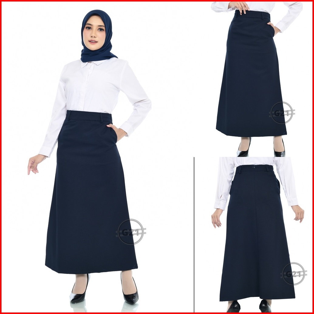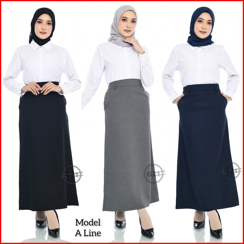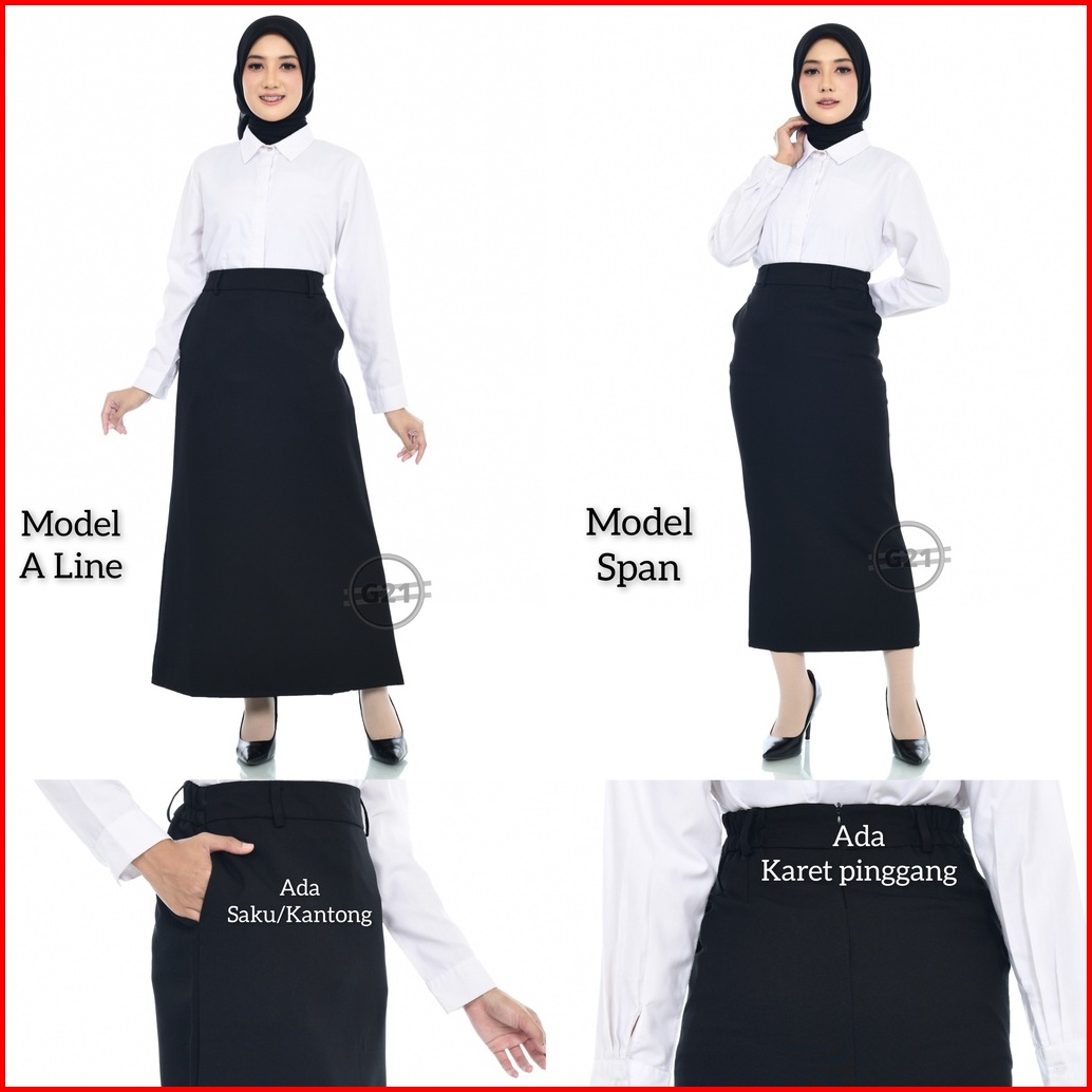 Rok Panjang Hitam Polos Model A Line Dan Span Pinggang Karet Dan Ada Kantong Saku Wanita Bahan Dasar Formal Untuk Kerja