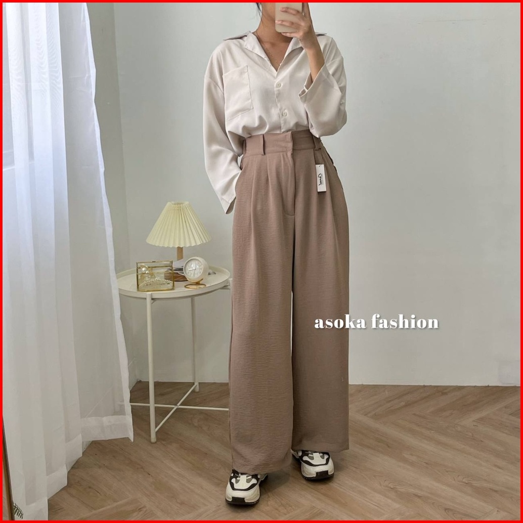 Loose Pants Trousers - Celana Kulot Anti Kusut Premium - Celana Kulot Wanita - Celana Wanita Highwaist - Celana Panjang