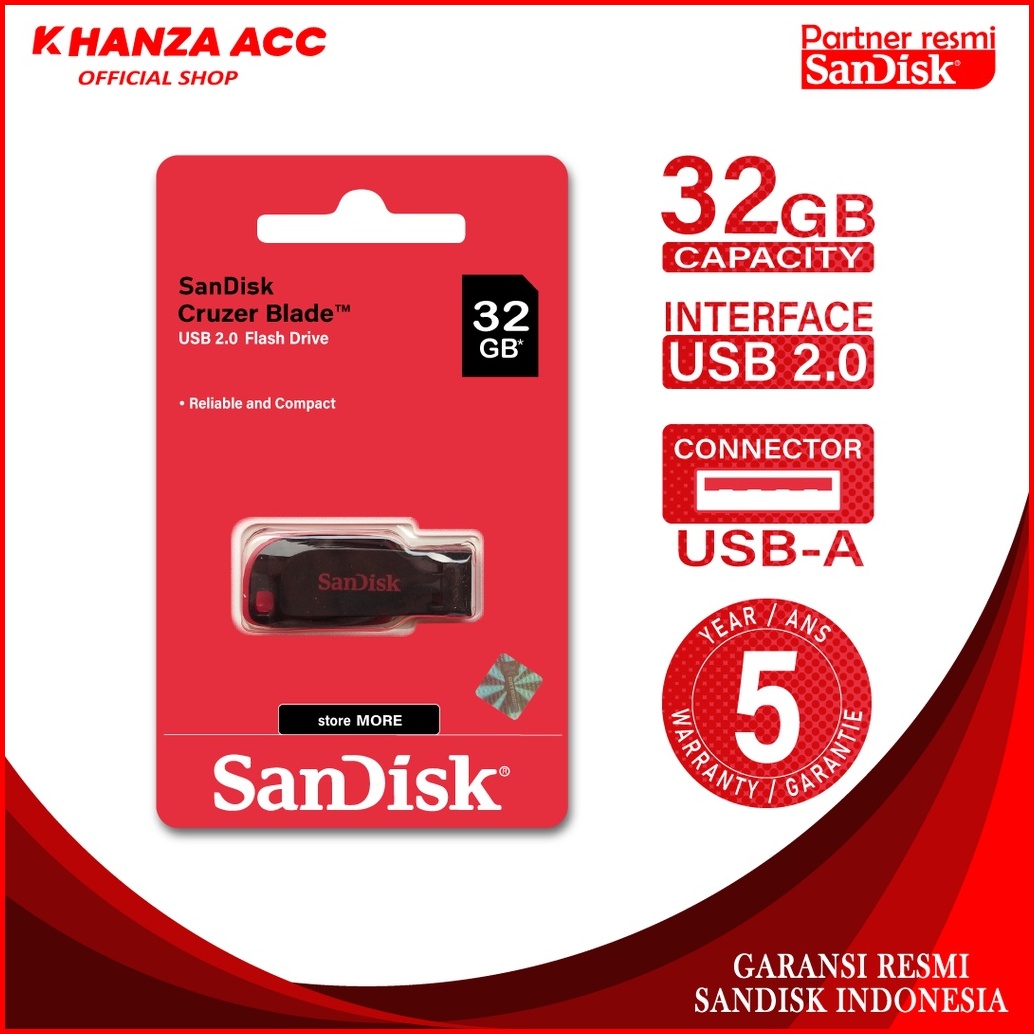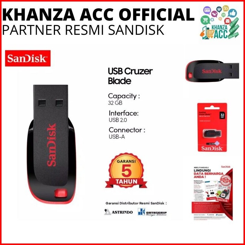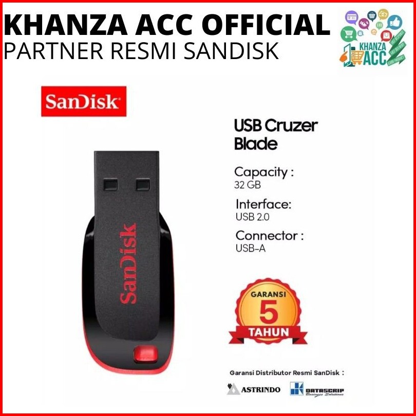 Khanzaacc Flashdisk Sandisk Cruzer Blade 32gb Cz50 Usb Flash Drive