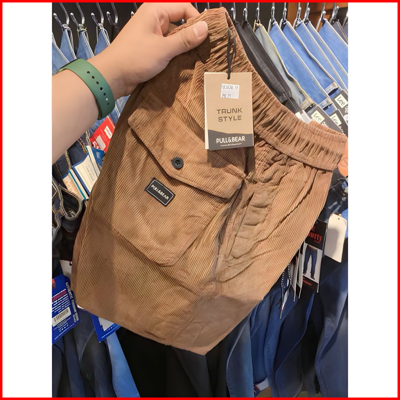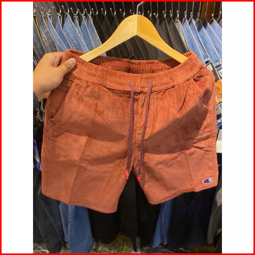 Celana Pendek Pria Santai Branded Corduroy Putih Slim-fitting