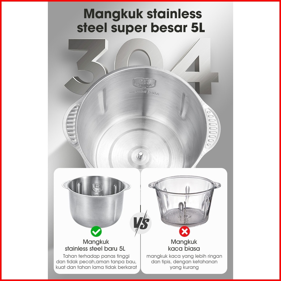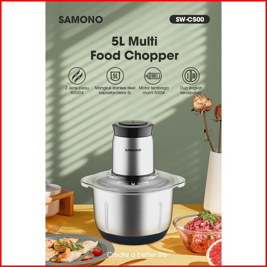 Samono Food Chopper 2 In 1 Stainless Steel 304 Kapasitas 5 Liter Garansi Resmi 1 Tahun Sw-c500