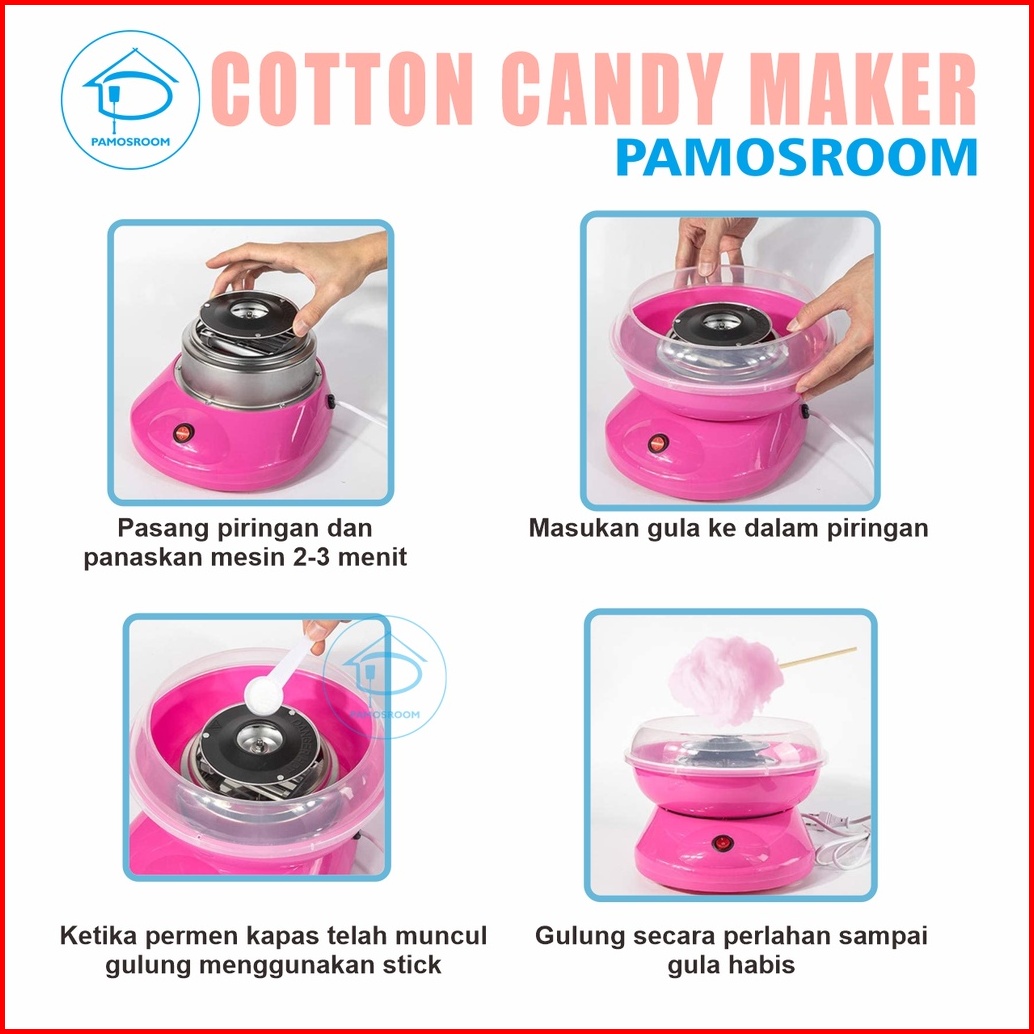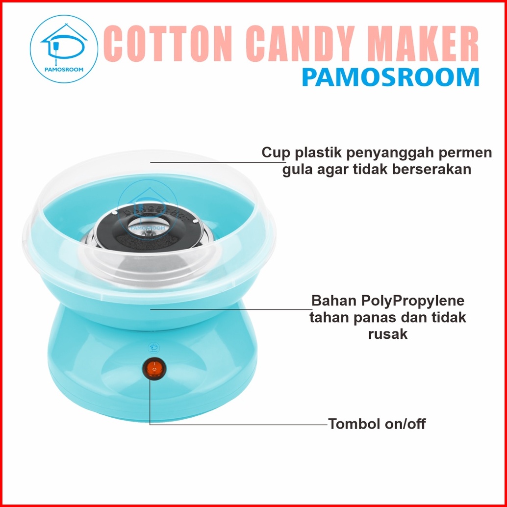 Pamosroom Mesin Gulali Mini Garansi 3 Bulan Electric Cotton Candy Floss Maker Alat Pembuat Permen Gula Kapas