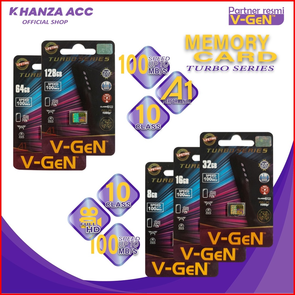 Khanzaacc Promo Memory Hp Micro Sd 8gb 16gb 32gb 64gb 128gb Micro Sd Vgen Turbo Series Class 10