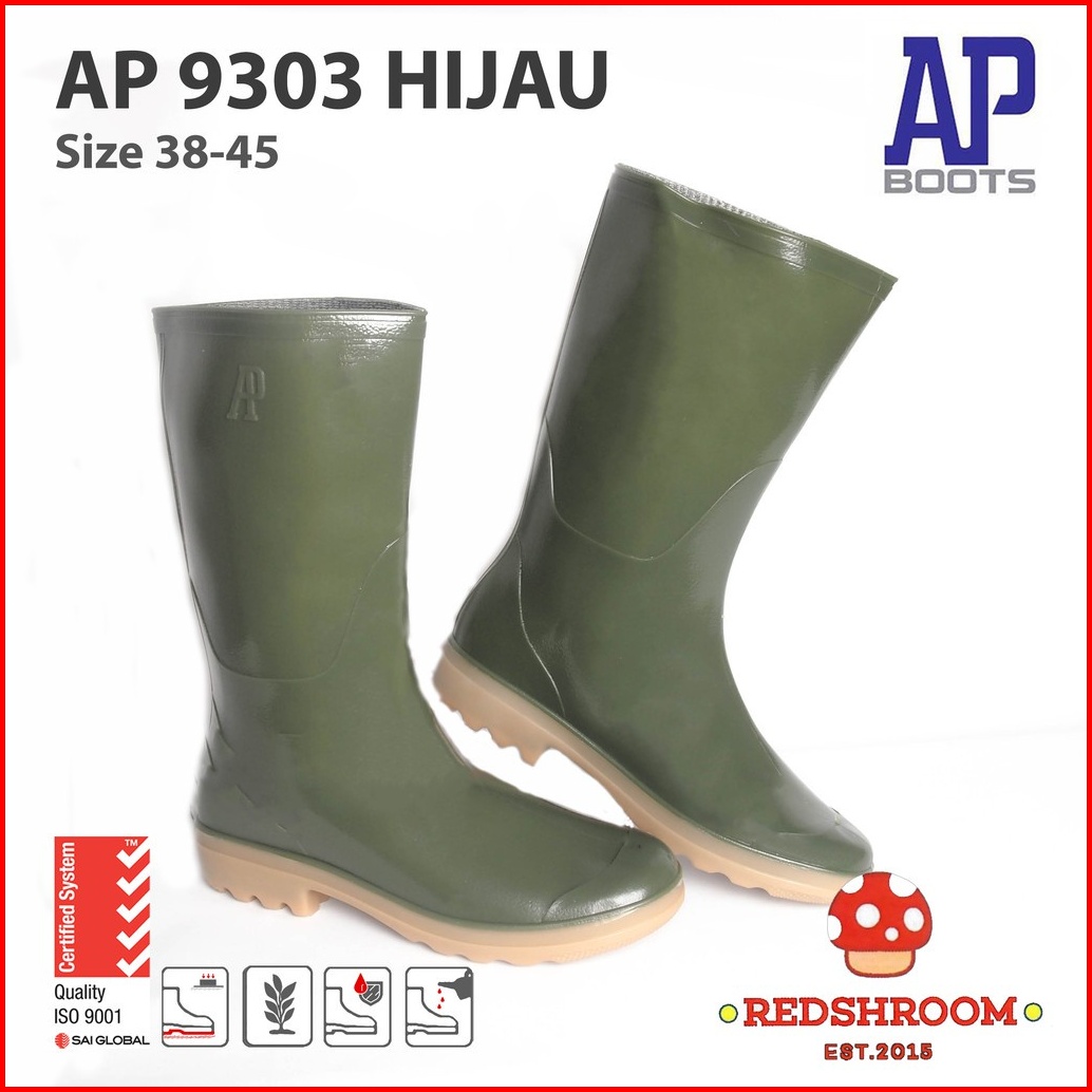 Sepatu Boot Tinggi Ap Boots Ap 9303 Sepatu Jumbo Extra Large Boots Hijau Karet Lokal Anti Air Slip Nyaman Perkebunan
