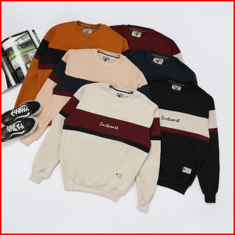 Sweater Crewneck Unisex Pria Wanita Full Color Block Eascoast
